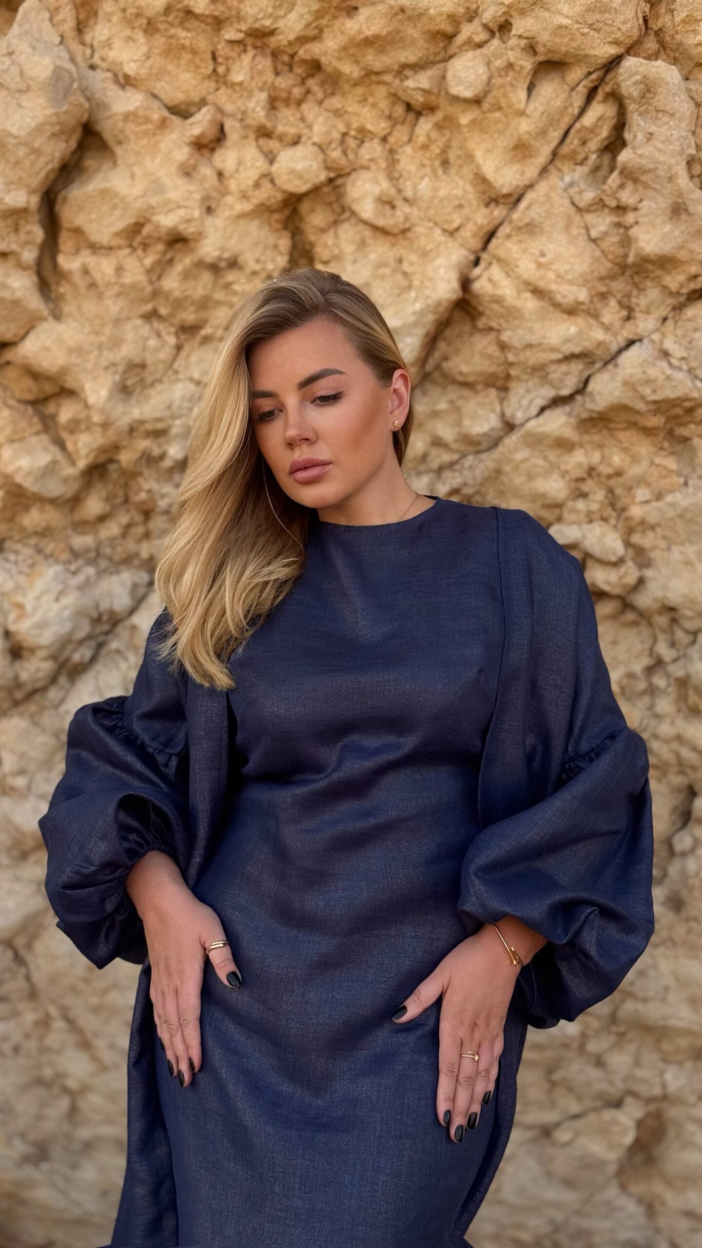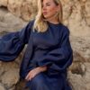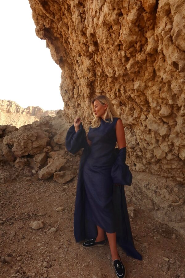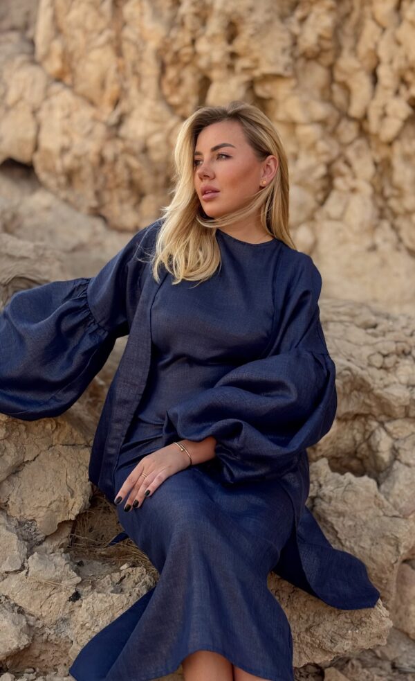 The deep navy shade adds a touch of strength and serenity, while the breathable linen keeps you comfortable all day long.