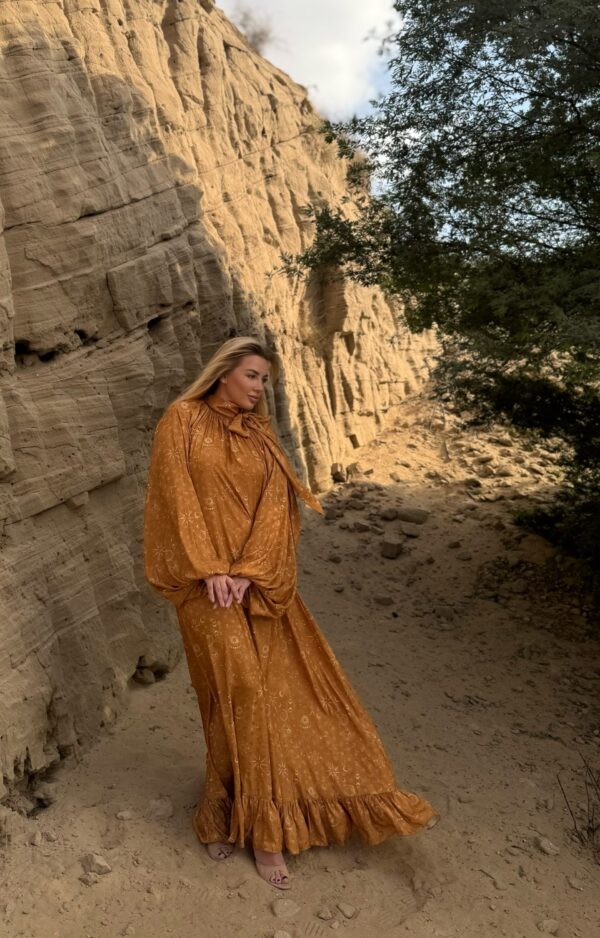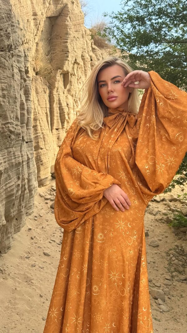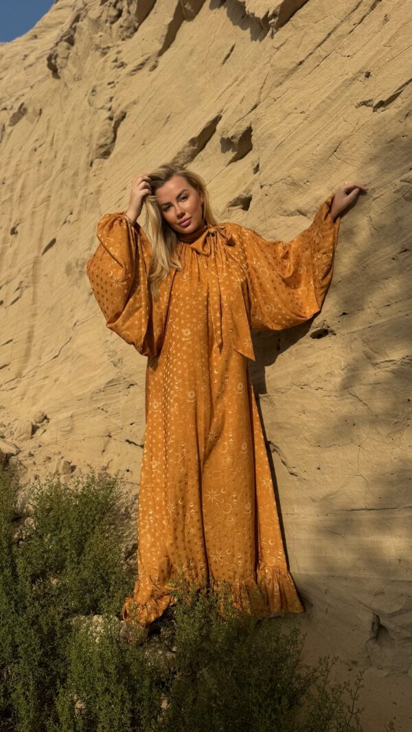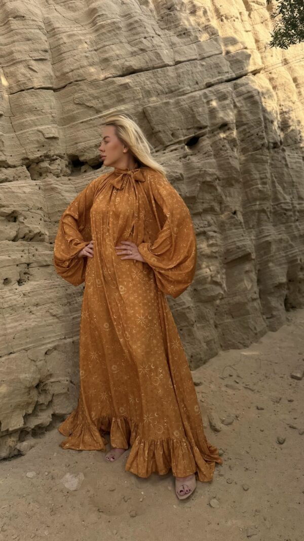Free size dress in jacquard fabric with bow sleeves